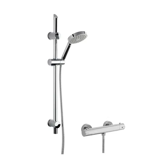 nuie Thermostatic Round Bar Valve & Single Function Slide Rail Shower Kit - Chrome