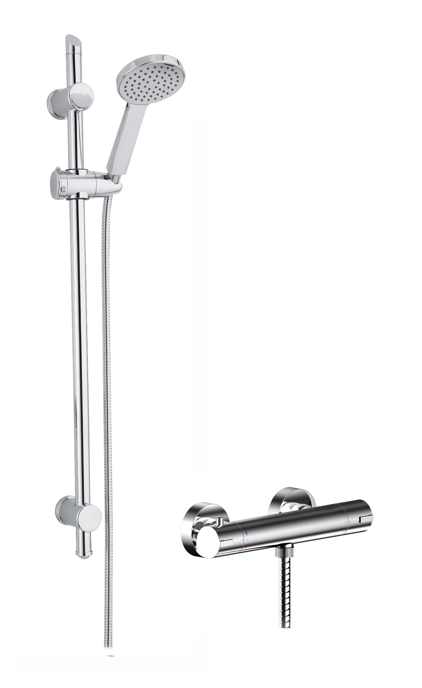 nuie Thermostatic Round Bar Valve & Single Function Slide Rail Shower Kit - Chrome