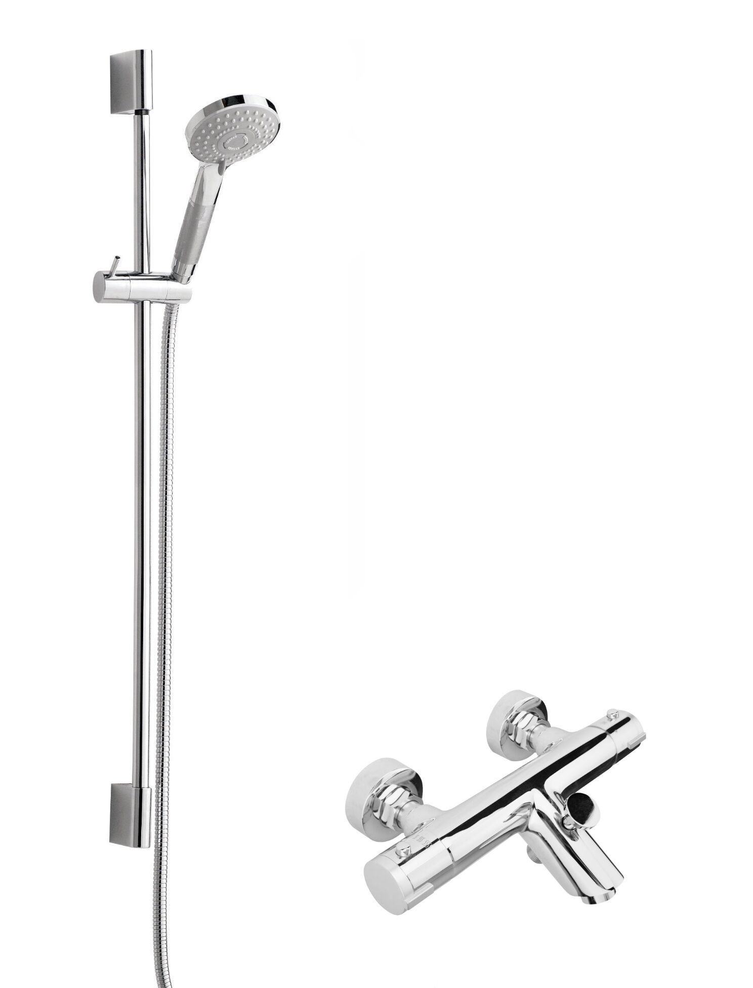 Thermostatic Round Bath Shower Mixer & Single Function Slide Rail Shower Kit