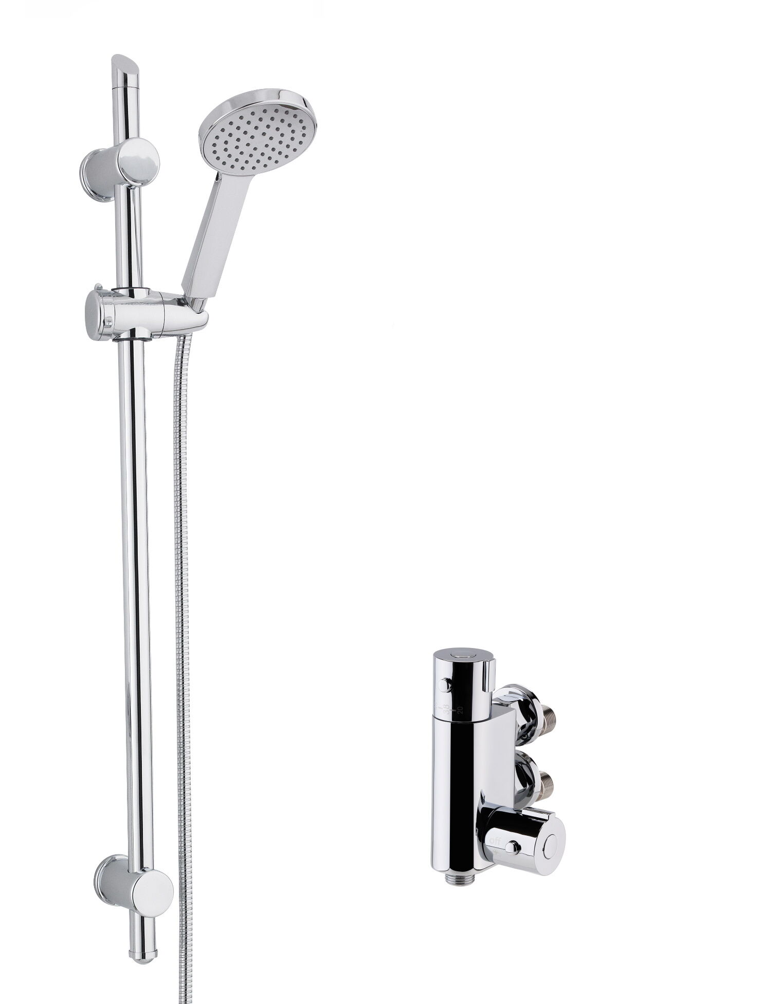 nuie Thermostatic Vertical Round Bar Valve & Single Function Slide Rail Shower Kit - Chrome