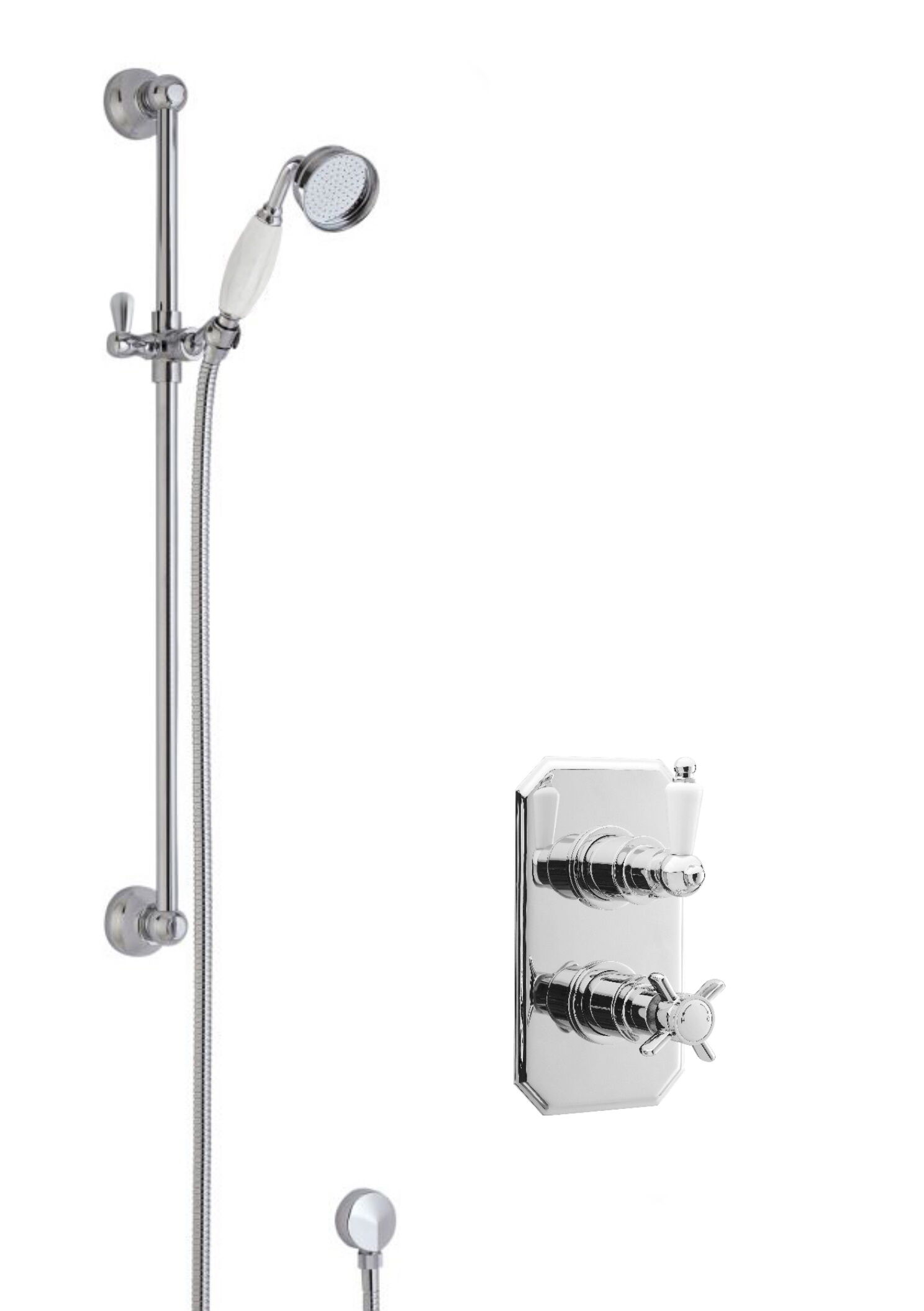 nuie Edwardian Traditional Thermostatic Concealed Twin Valve & Single Function Slider Rail Kit & Outlet Elbow - Chrome/White
