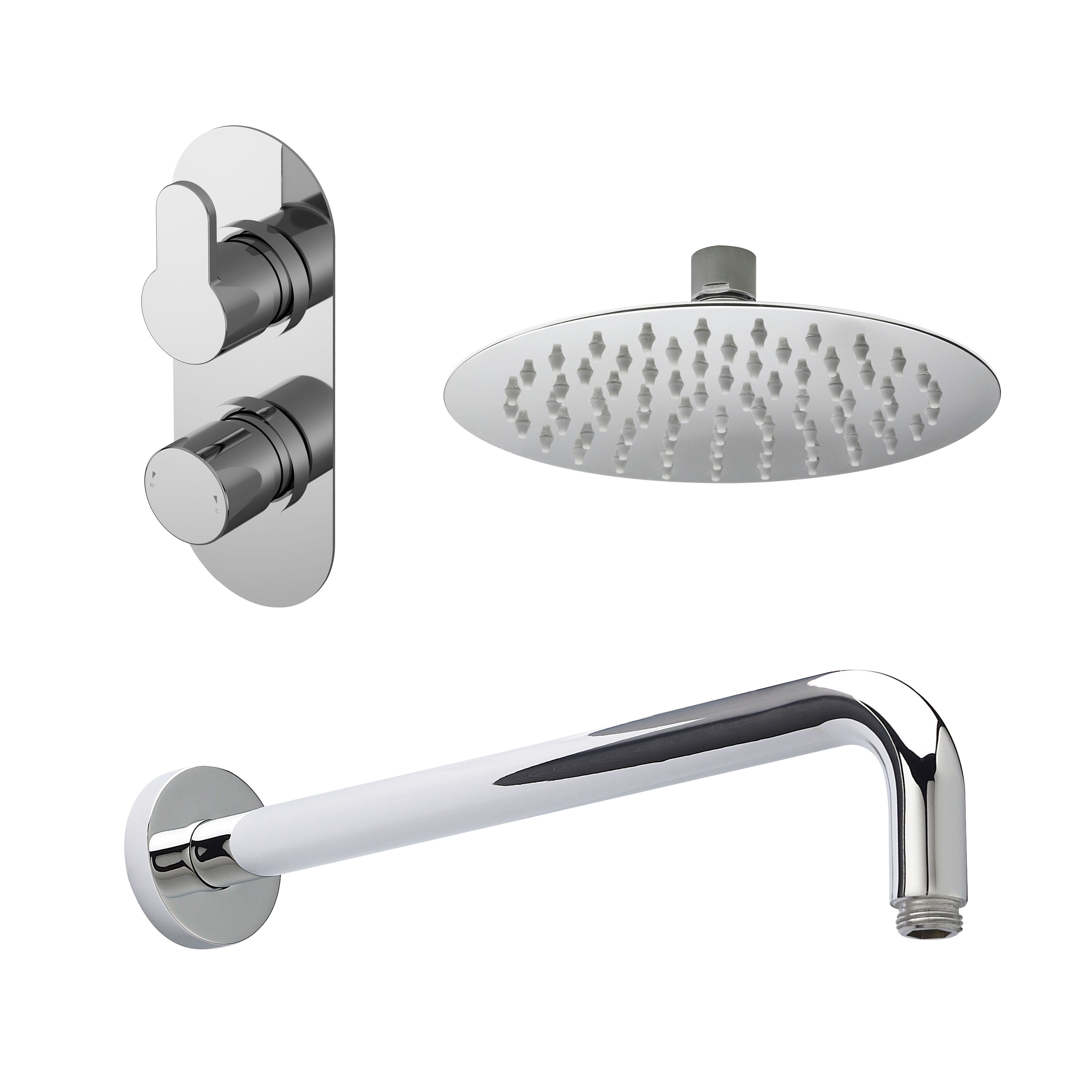 nuie Arvan Chrome Twin Thermostatic Valve, Wall-Mounted Shower Arm and Fixed Shower Head