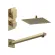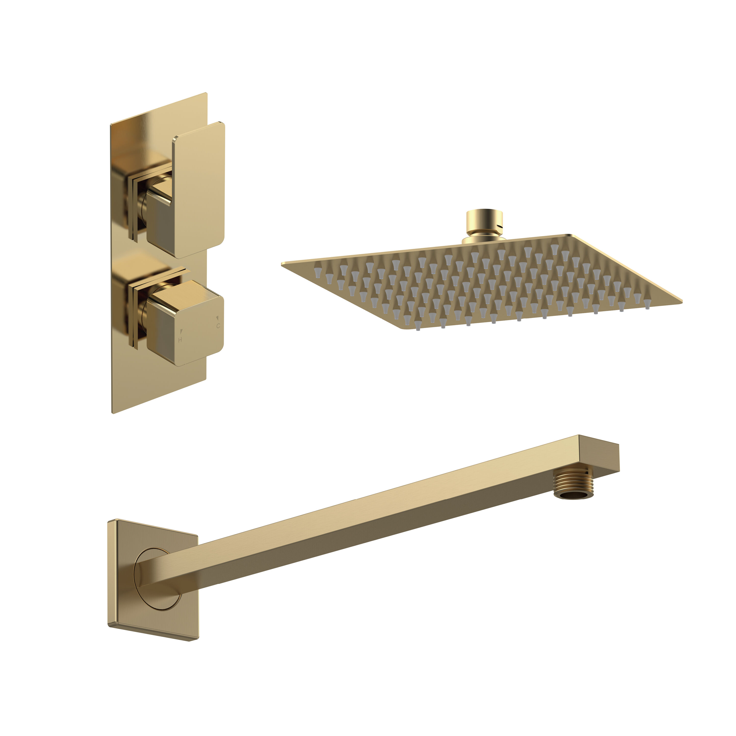 Nuie Windon Brushed Brass Twin Thermostatic Valve, Square Wall-Mounted Shower Arm and Fixed Head