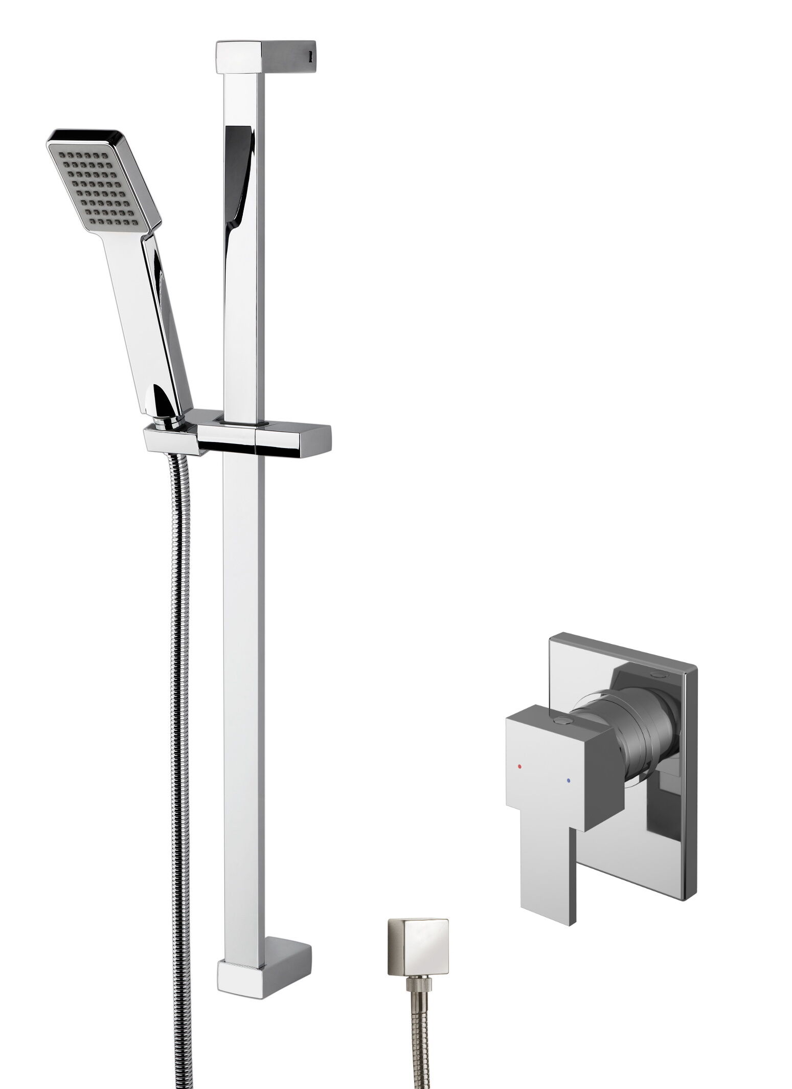 nuie Sanford Manual Concealed Square Valve & Slide Rail Kit with Single Function Handset & Outlet Elbow Shower Kit - Chrome