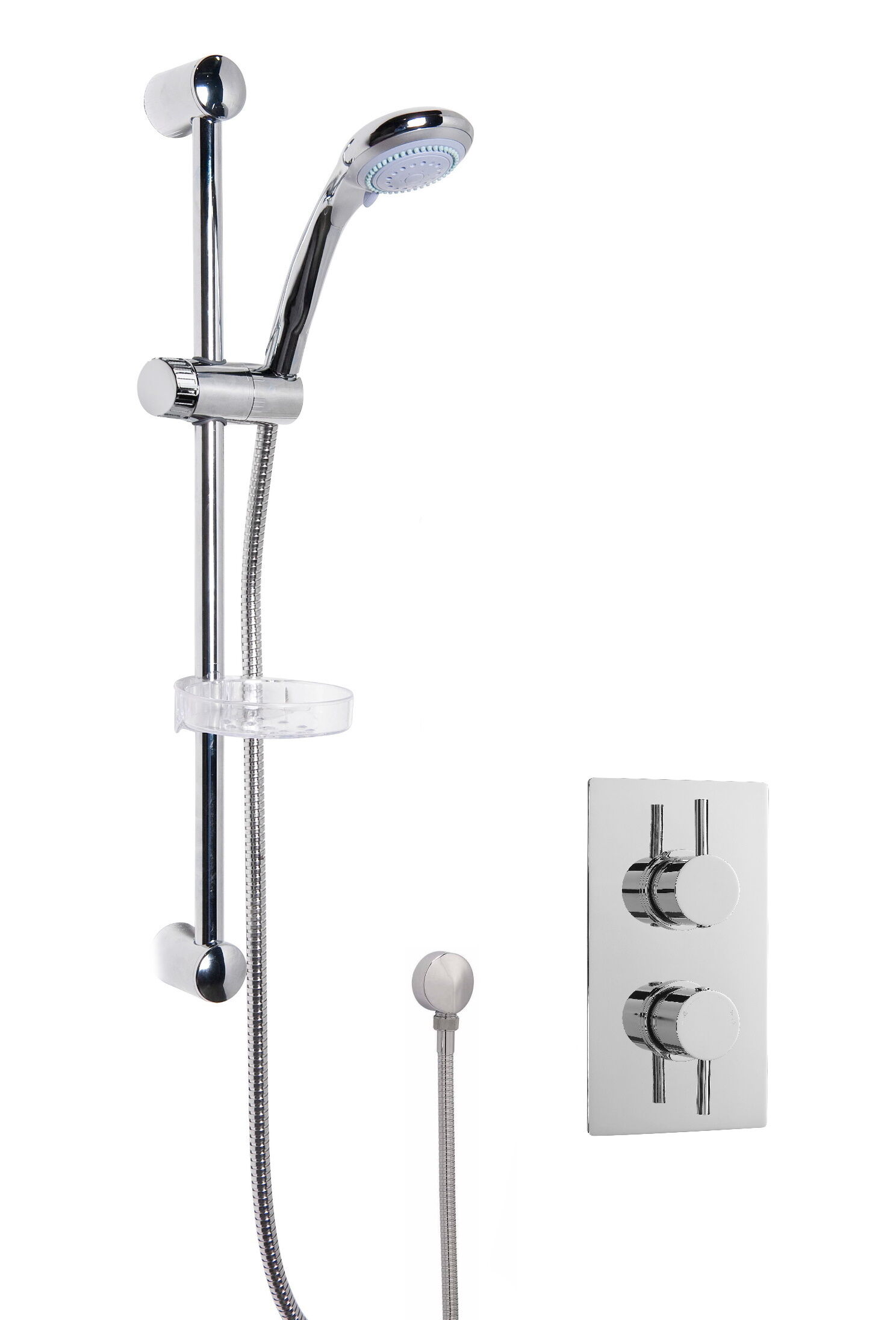 nuie Thermostatic Concealed Twin Round Valve & Slide Rail Kit with Multi Function Handset & Outlet Elbow Shower Kit - Chrome