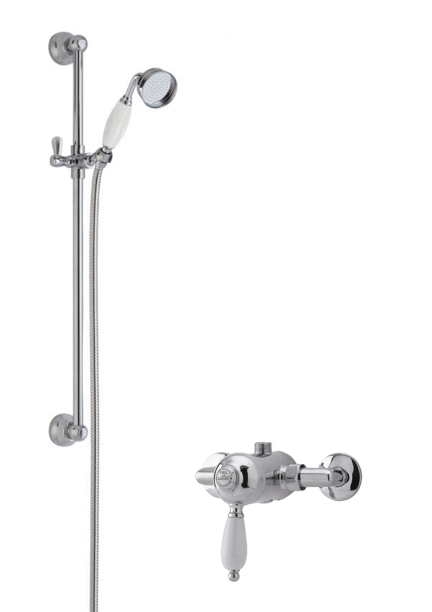 nuie Traditional Manual Exposed Valve & Single Function Slider Rail Kit & Outlet Elbow - Chrome/White