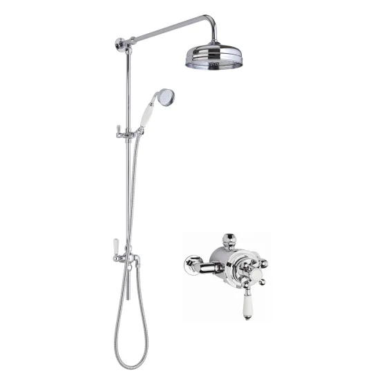 nuie Victorian Traditional Dual Exposed Valve & Rigid Riser Shower Kit - Chrome/White