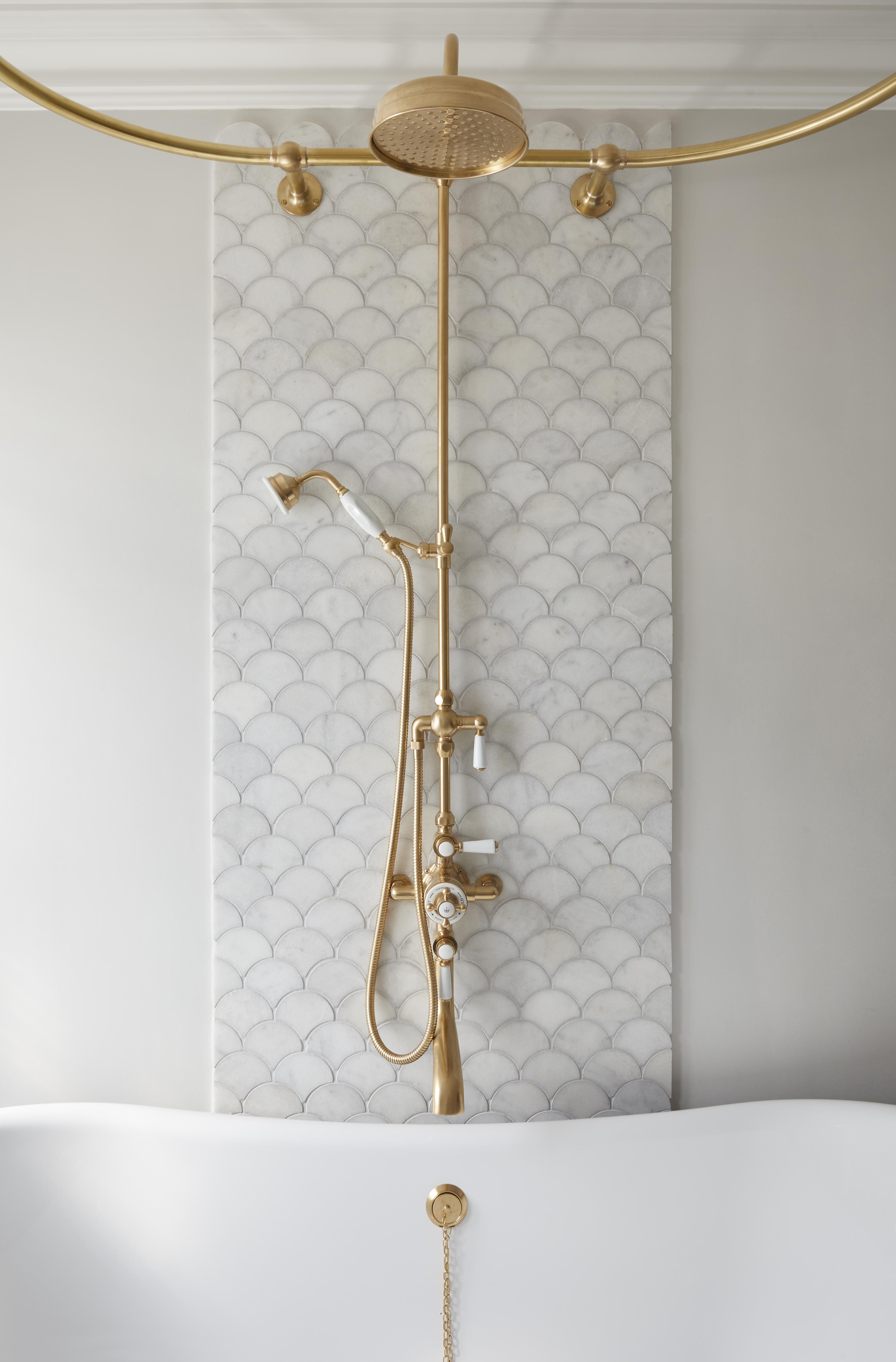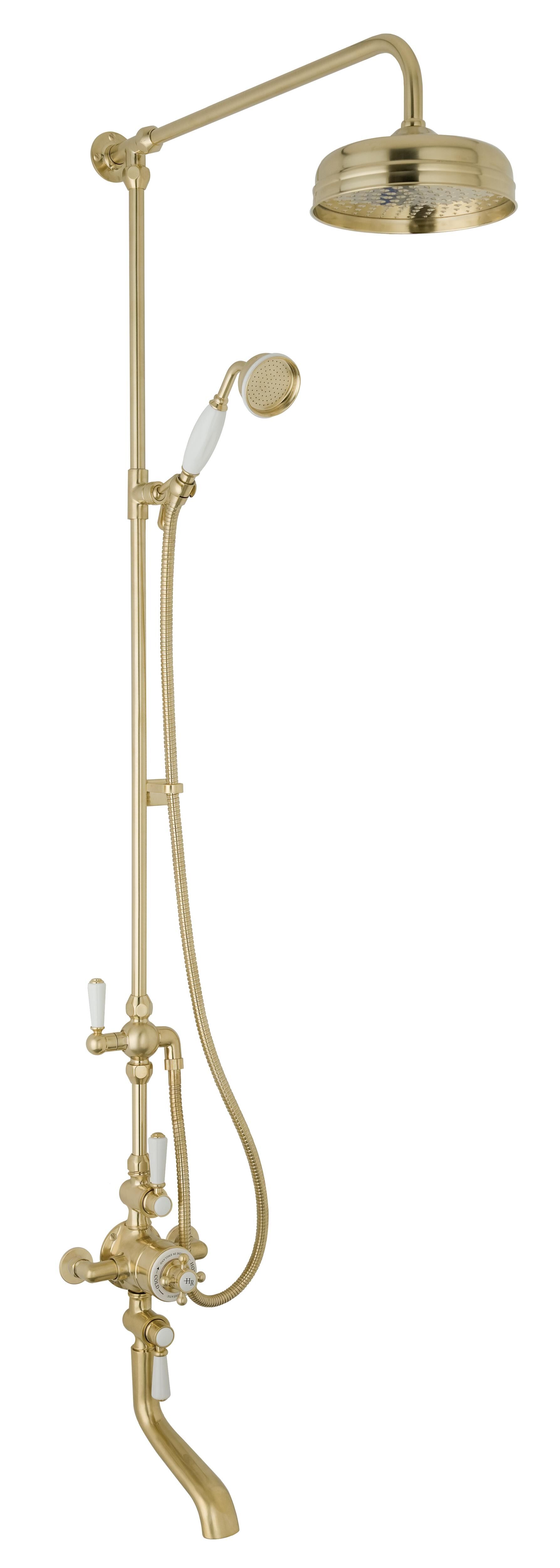 BC Sanitan Victrion Triple Exposed Thermostatic Valve, Spout Bath Filler and 8" Head - Brushed Gold