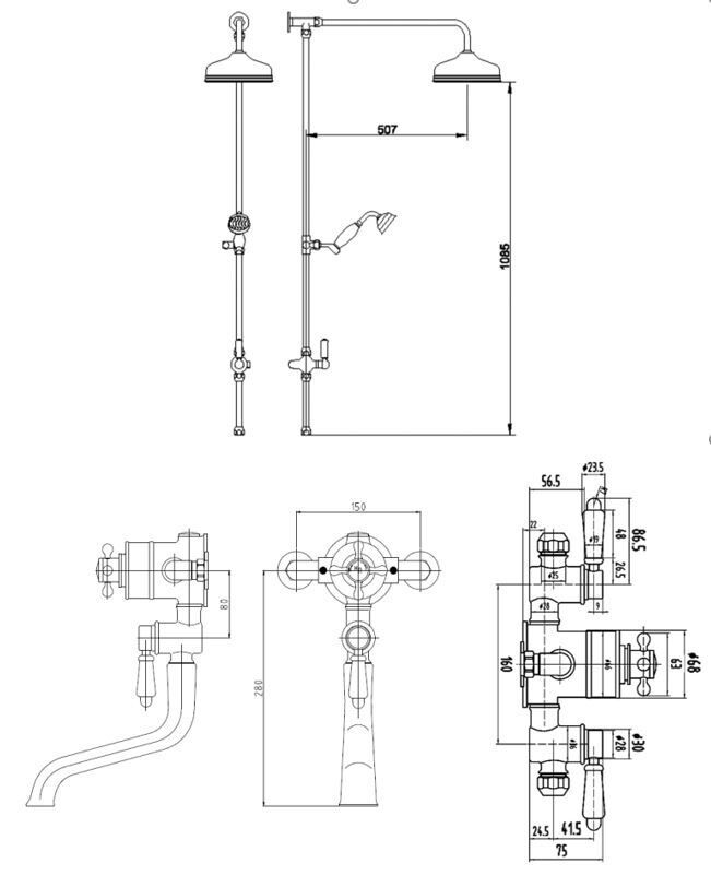 BC Sanitan Victrion Triple Exposed Thermostatic Valve, Spout Bath Filler and 8" Head - Gold