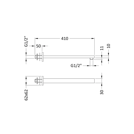 nuie Fixed Shower Heads Small Rectangular Shower Arm - Gunmetal