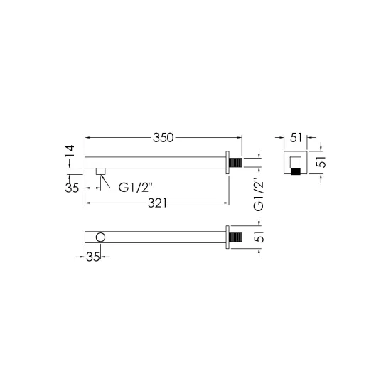 Synergy Square Chrome Wall Mounted Shower Arm