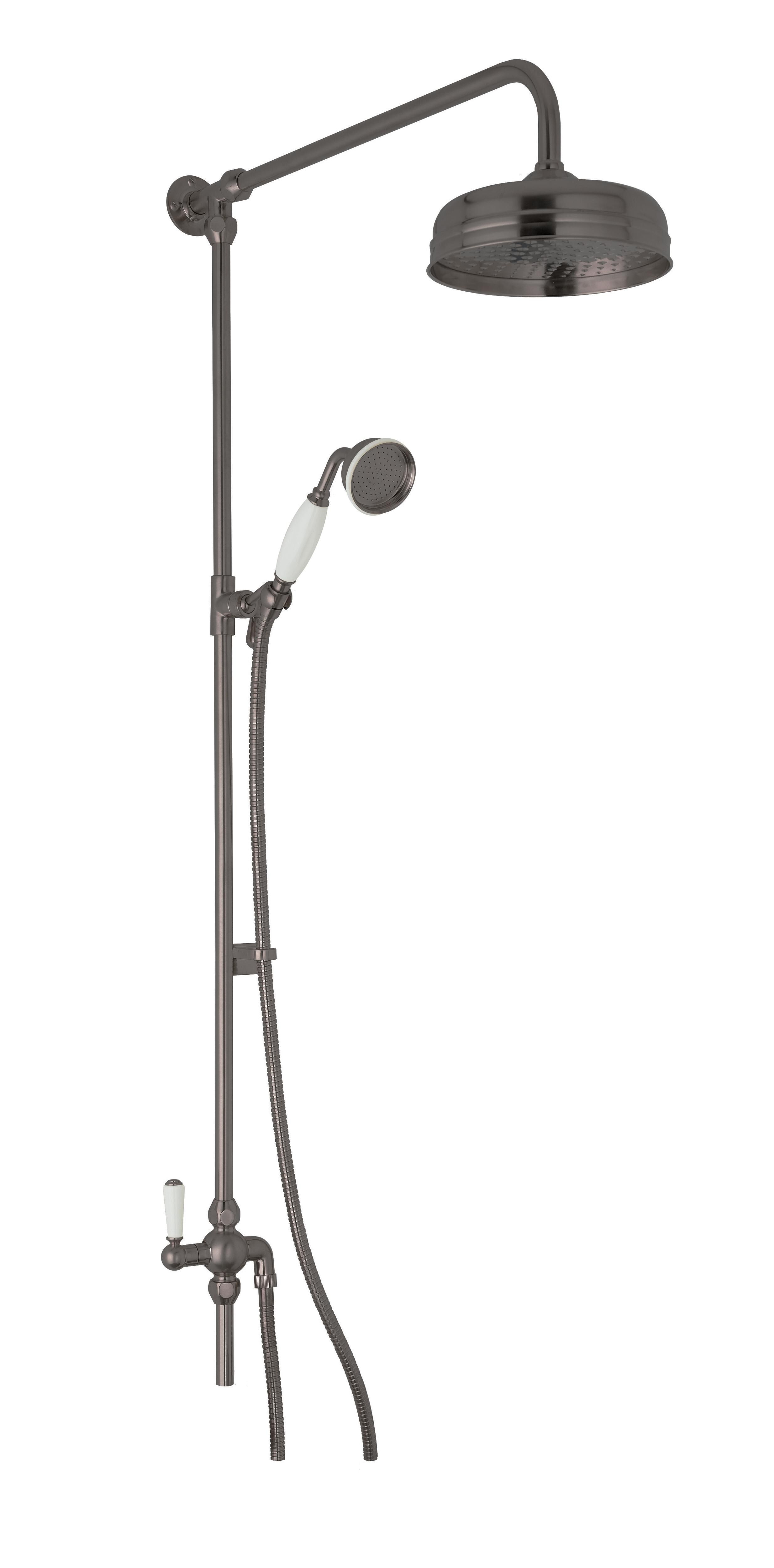 BC Sanitan Victrion Superbe Fixed Rigid Riser Kit with 8" Shower Head and Handset - Brushed Pewter