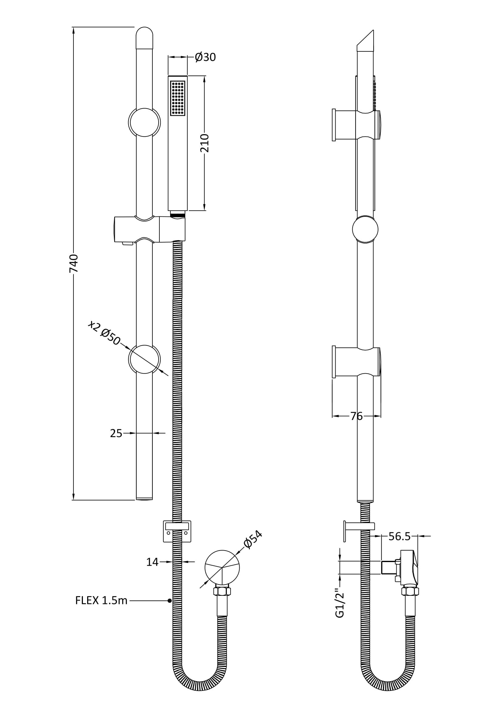 Nuie Lux Showers Kits Slide Rail Kit - Matt Black