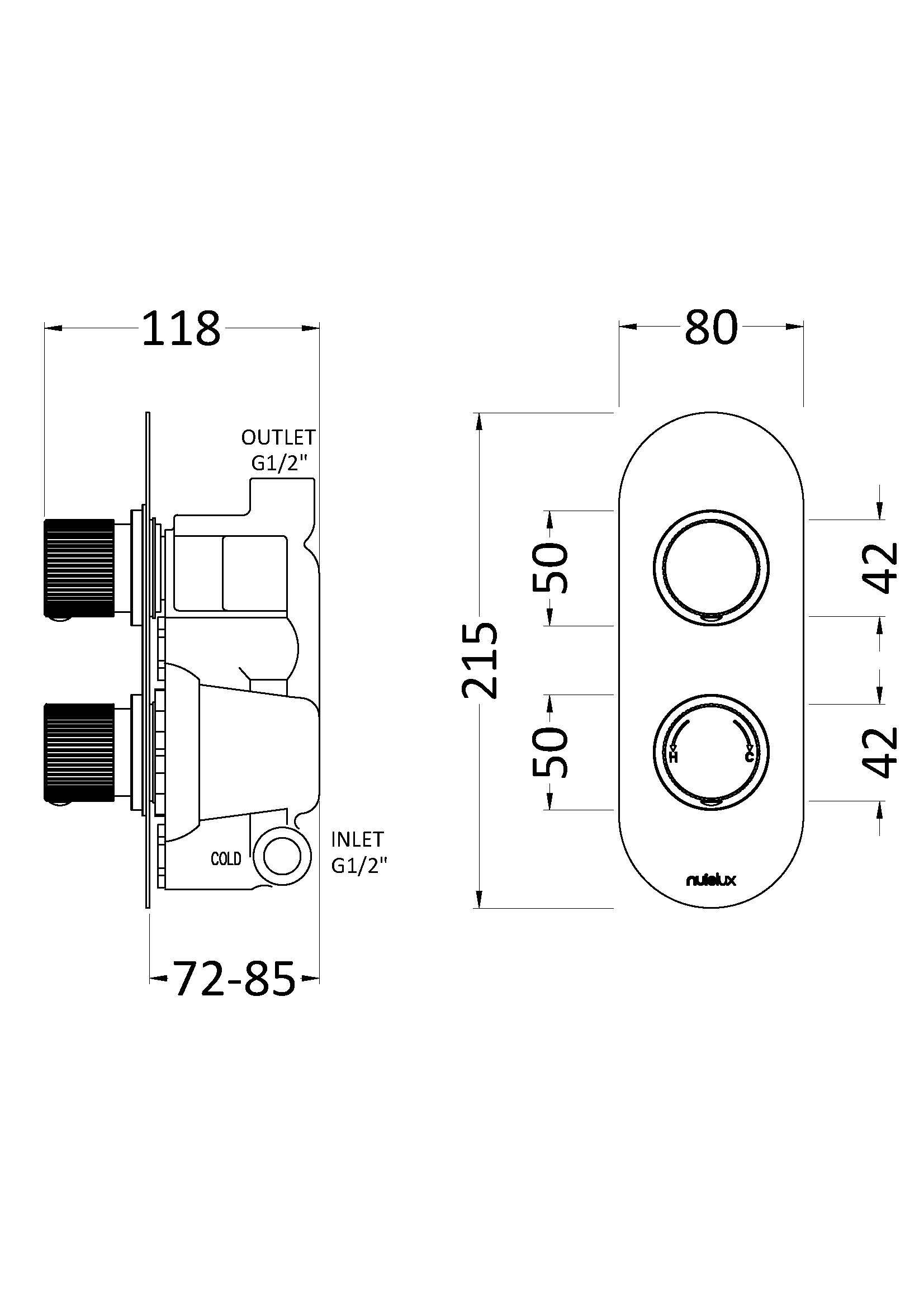 Full thermal protection to prevent scalding in the event of hot or cold water shut off.