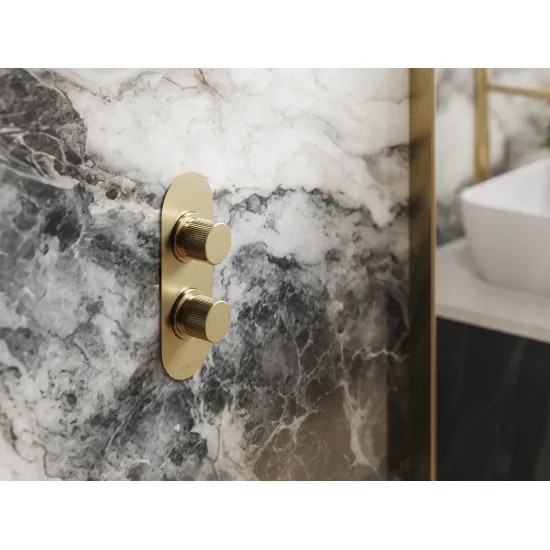 Nuie Lux Esker Twin Thermostatic Valve- Brushed Brass
