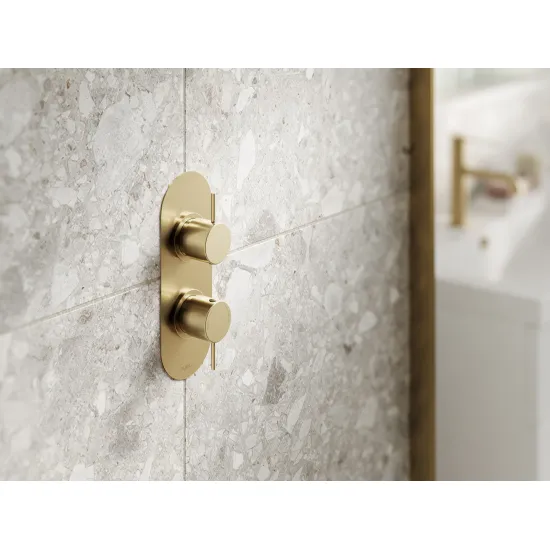 Nuie Lux Riven Twin Thermostatic Valve- Brushed Brass
