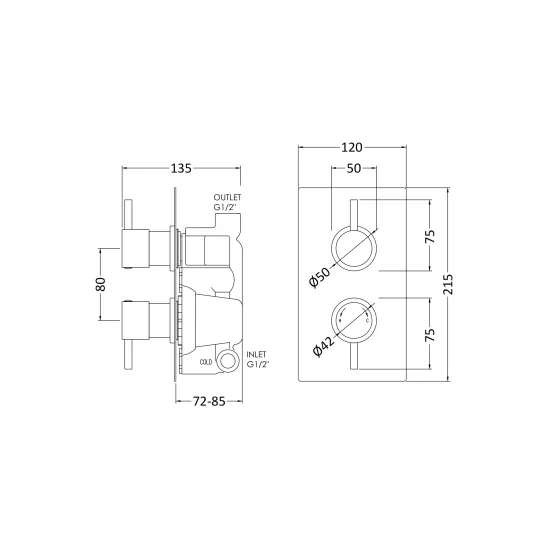 Square Showers Twin Thermostatic Shower Valve