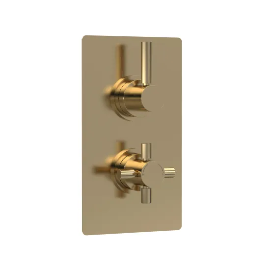 Tec Pura Twin Thermostatic Shower Valve Brushed Brass