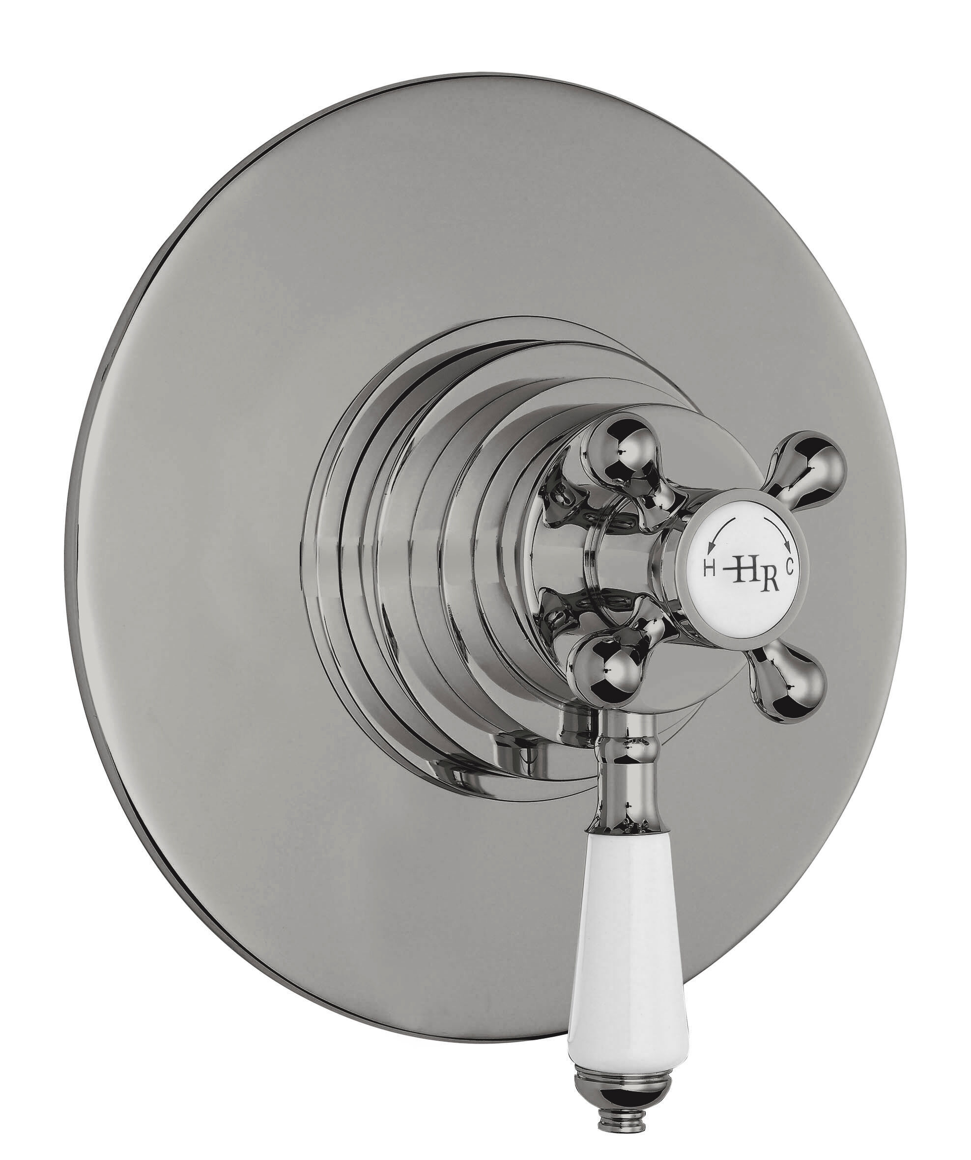 Old London White Topaz Twin Thermostatic Shower Valve - Brushed Pewter