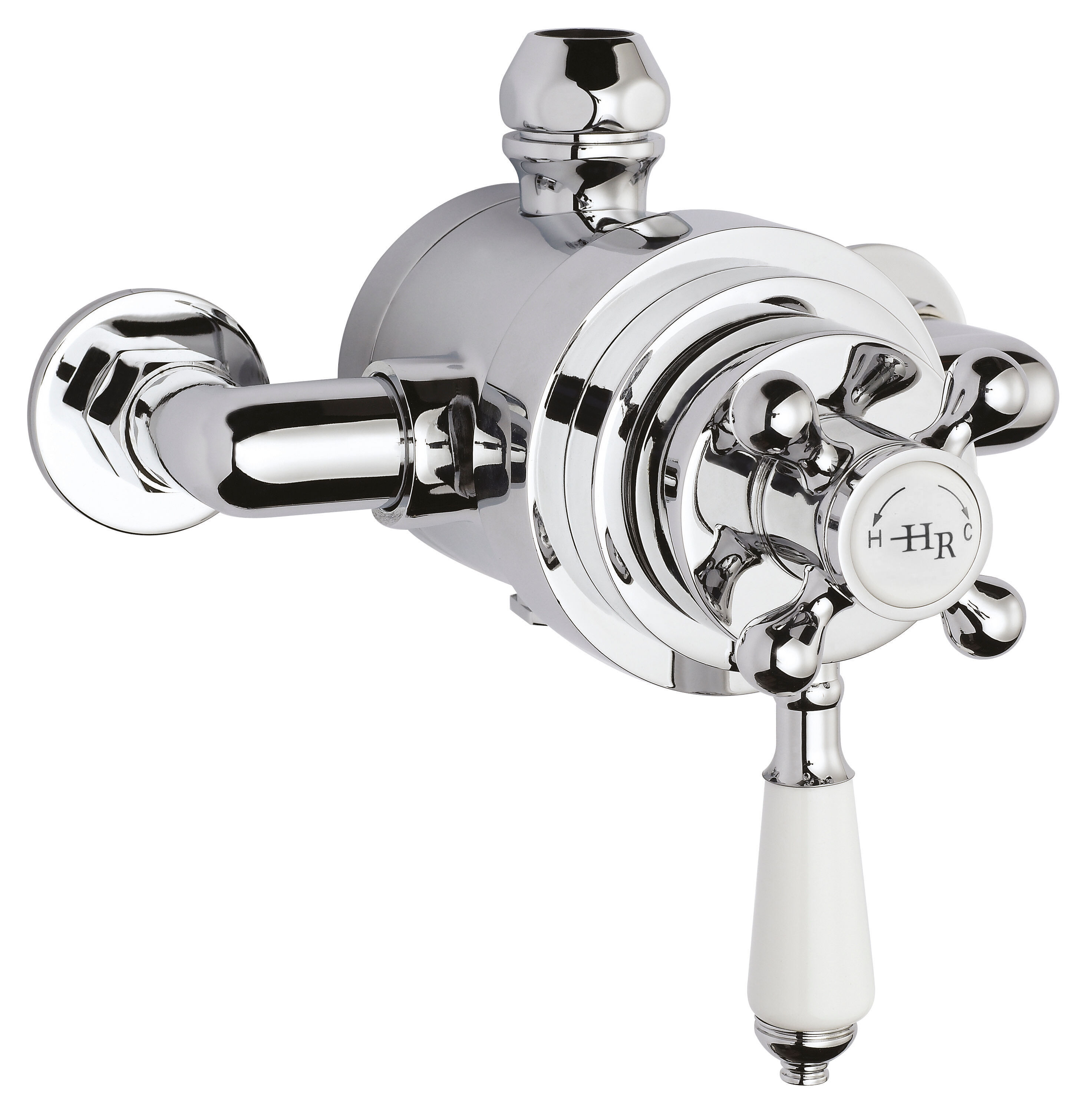 Old London White Topaz Exposed Dual Shower Valve - Chrome / White