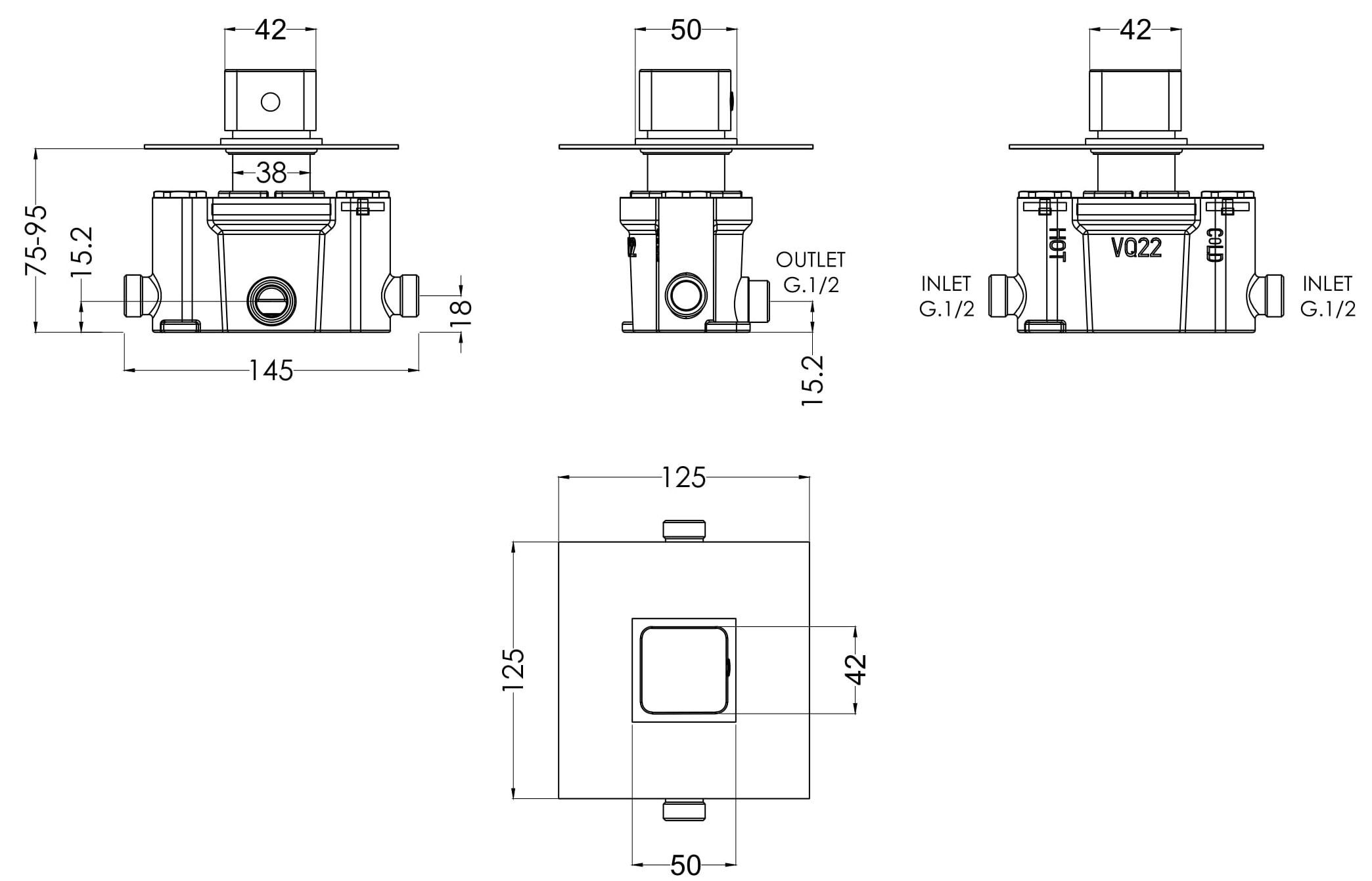 nuie Windon Thermostatic Temperature Control Valve - Chrome