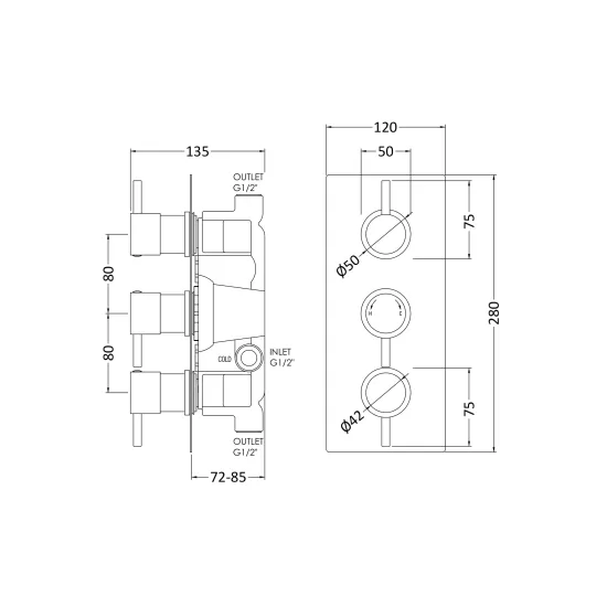 Square Showers Twin Thermostatic Shower Valve With Diverter