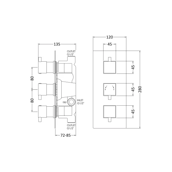 Square Showers Twin Thermostatic Shower Valve