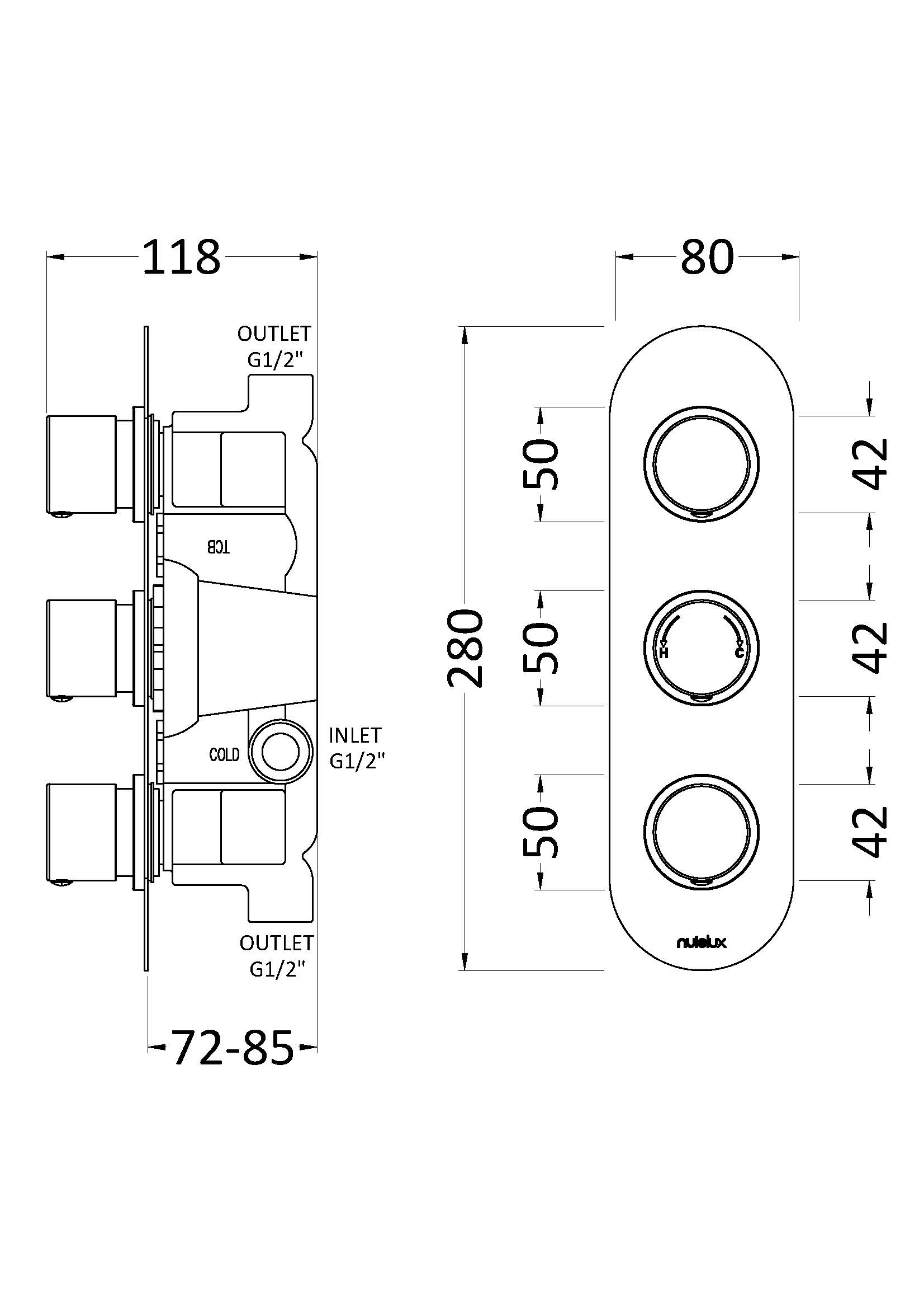 Full thermal protection to prevent scalding in the event of hot or cold water shut off.