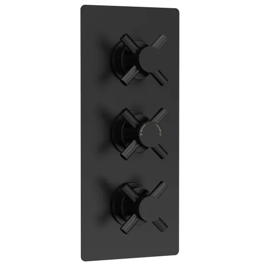 Tec Crosshead Triple Thermostatic Shower Valve Matt Black