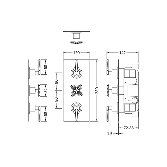Aztec Twin Thermostatic Concealed Shower Valve with Diverter - 2 Outlet
