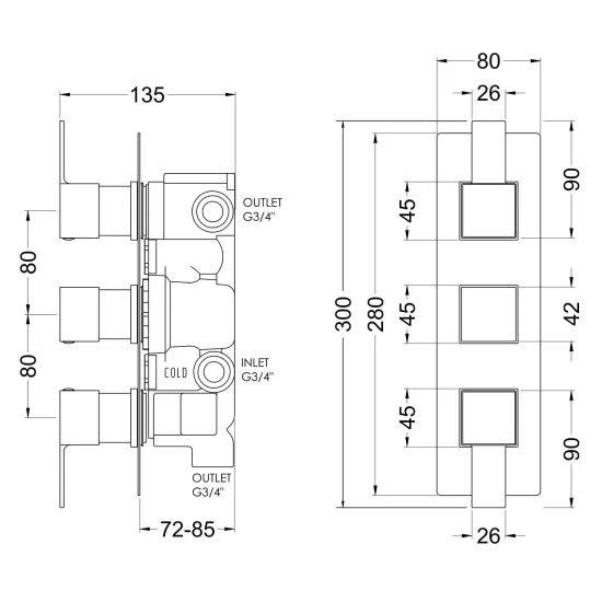 Sanford Wall Mounted 2 Tap Hole Basin Mixer