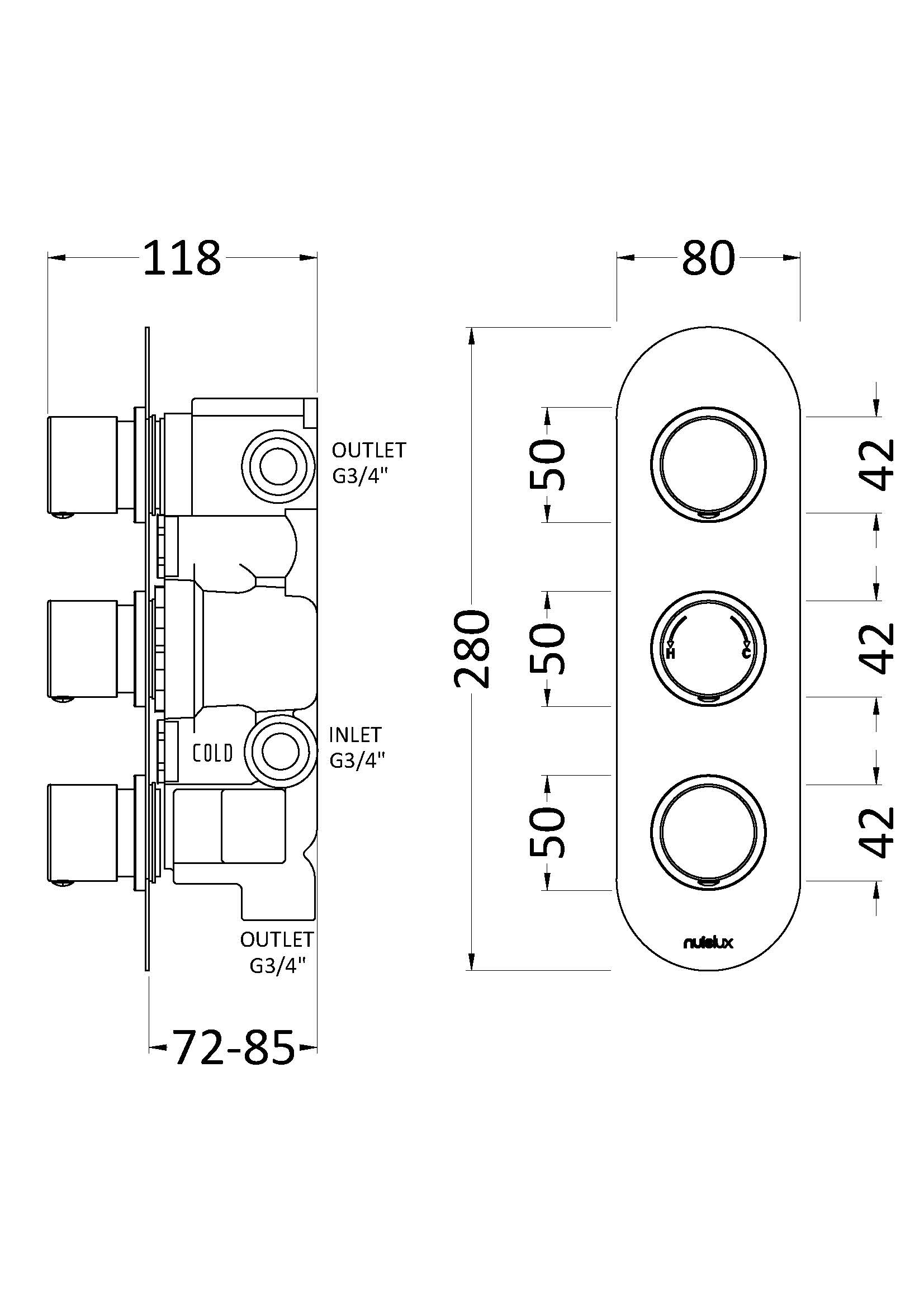 Full thermal protection to prevent scalding in the event of hot or cold water shut off.