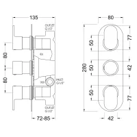 Traba Triple Thermostatic Concealed Shower Valve - 2 Outlet - Chrome