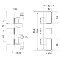 Aztec Triple Thermostatic Concealed Shower Valve - 2 Outlet