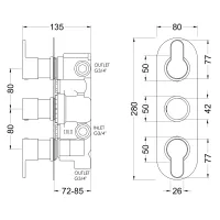 Synergy Vega Triple Thermostatic Valve - Chrome