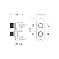 Traba Twin Thermostatic Concealed Shower Valve with Diverter - 2 Outlet - Matt Black