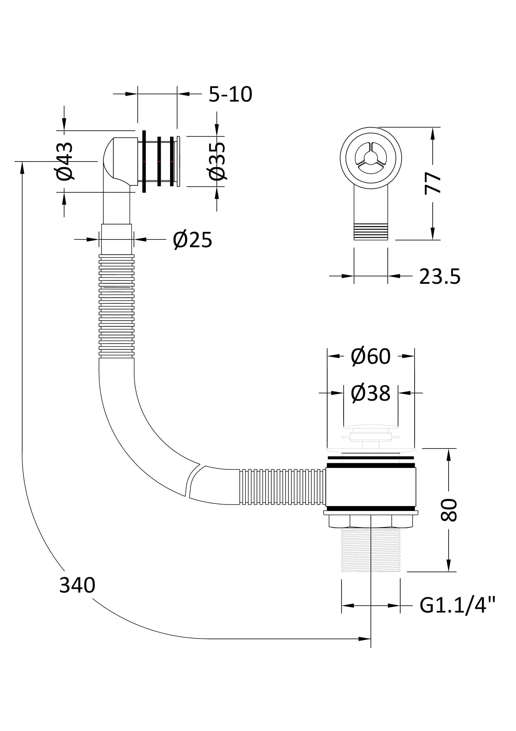 Stone Basin Waste With Brass Overflow - Brushed Pewter